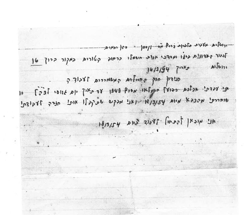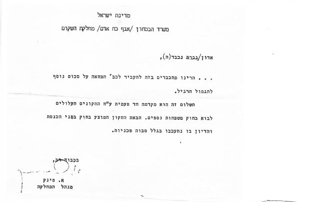 מכתב בקשה של רחמים לשוב לעבודה אחרי השחרור