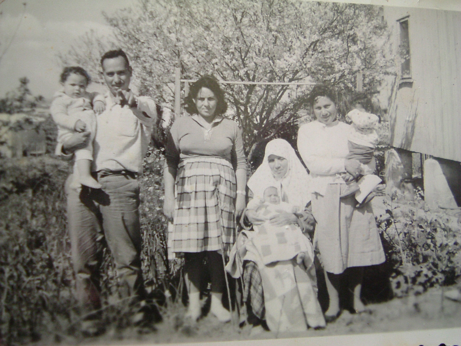 מימין: רחל, סולטון, אילנה, אורי עם דודו על הידיים