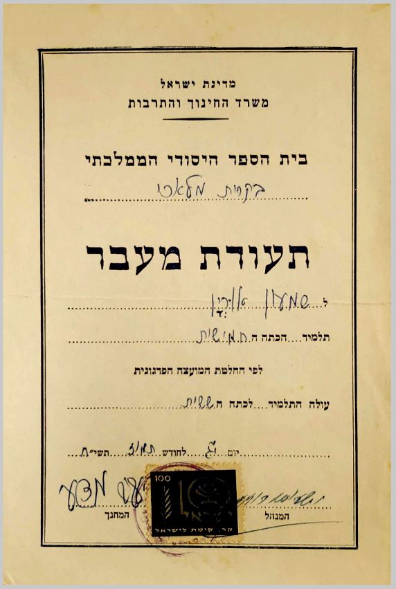 תעודות שמעון כיתות א-ח