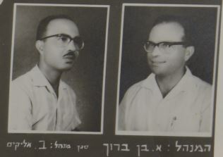רביעי נראה לי שזה המנהל ישעיהו רוזנבבלום, חמישי המורה עזרא סמוכה, אחרון בשורה זה המורה בנימין