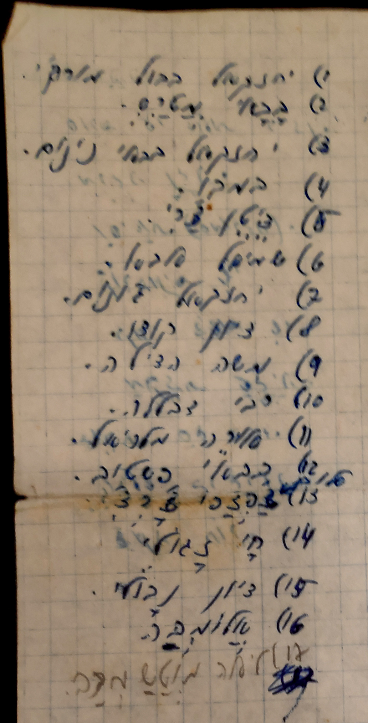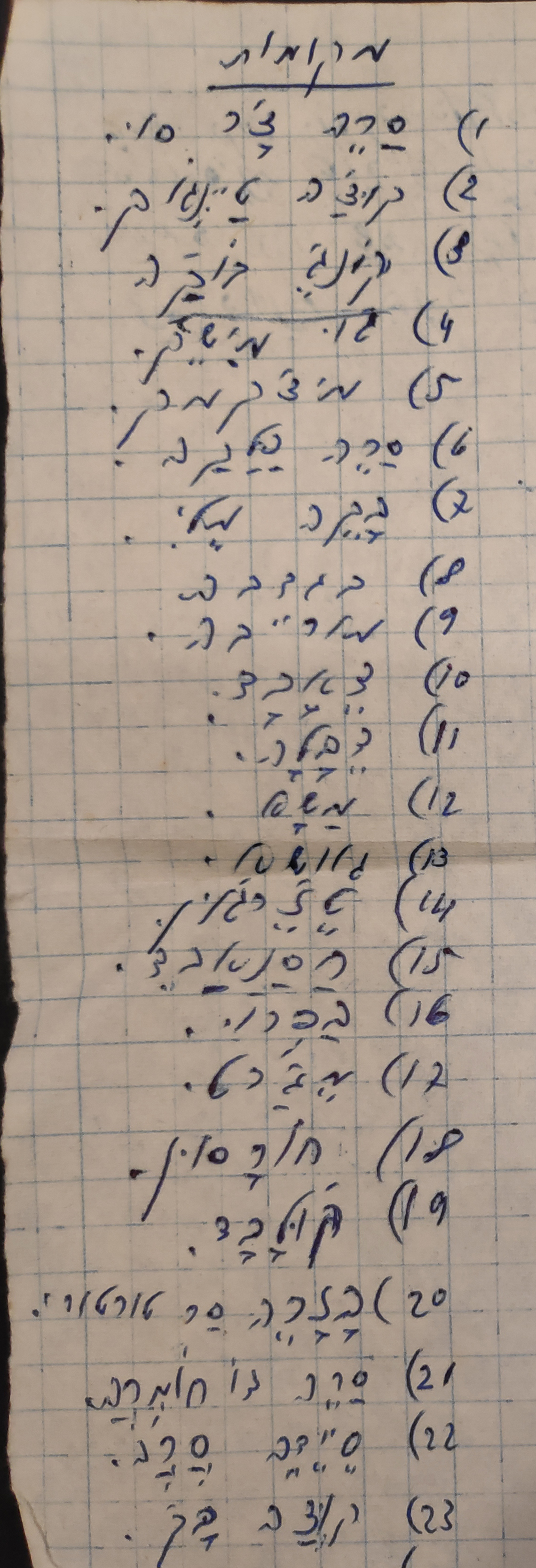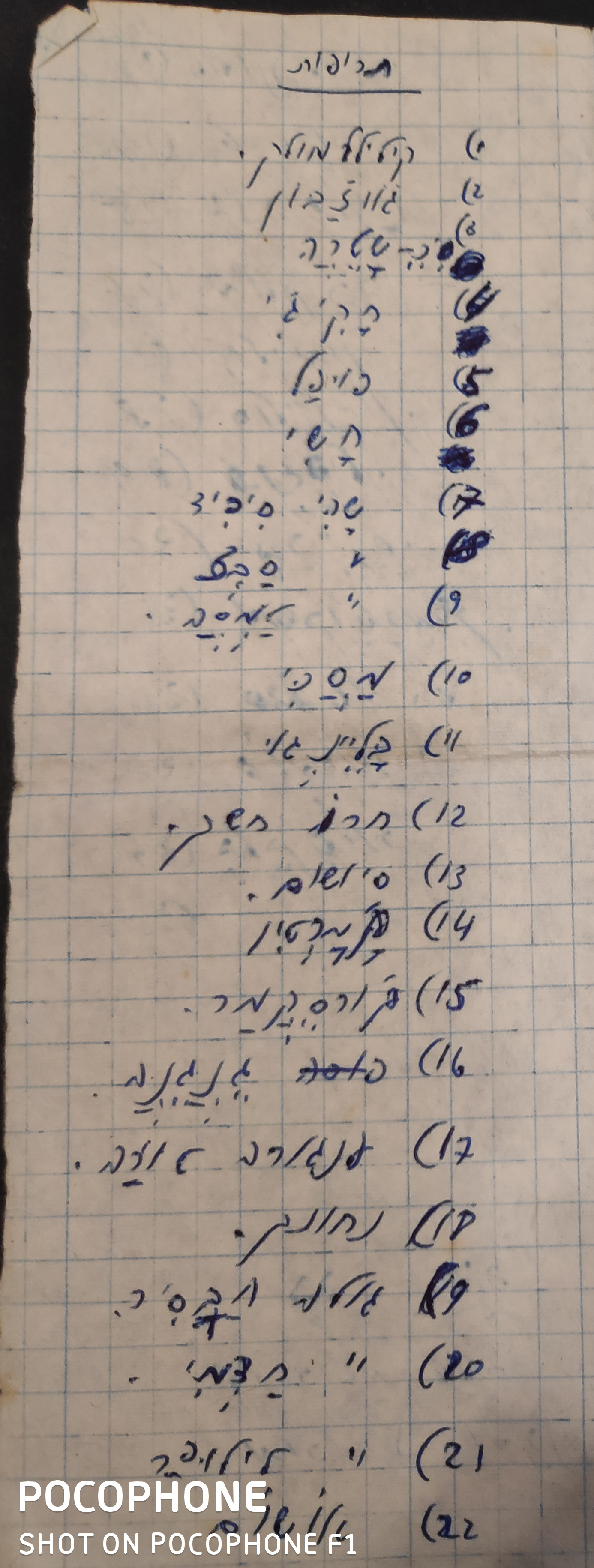 אחת הפעמים שדיברנו על שמות של יזדים, הבאתי דף ועט ואמרתי לדוד שיגיד את כל מה שהוא מכיר, שמות של יזדים, מקומות ביזד וצמחי מרפא.